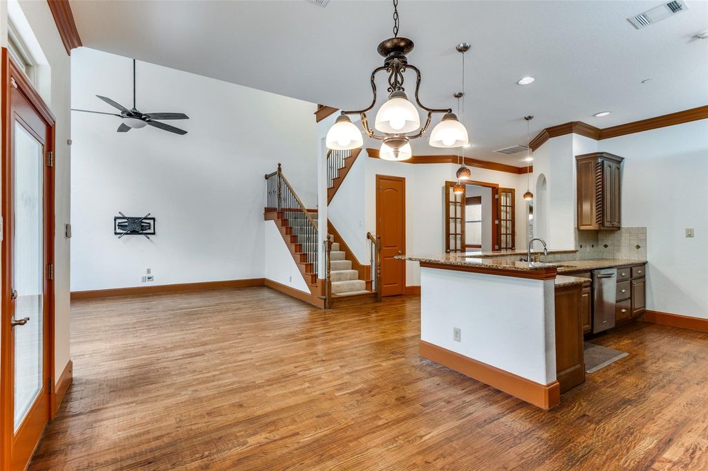Don't miss this custom townhome nestled among the oak trees and creek in Stone Bridge Oaks! With its prime location, you'll be just minutes away from DFW Airport and can enjoy shopping and amenities in every direction. This custom home features hand-scraped wood floors, crown molding, solid wood doors, separate dining and office spaces, and an abundance of windows to let natural light shine throughout.