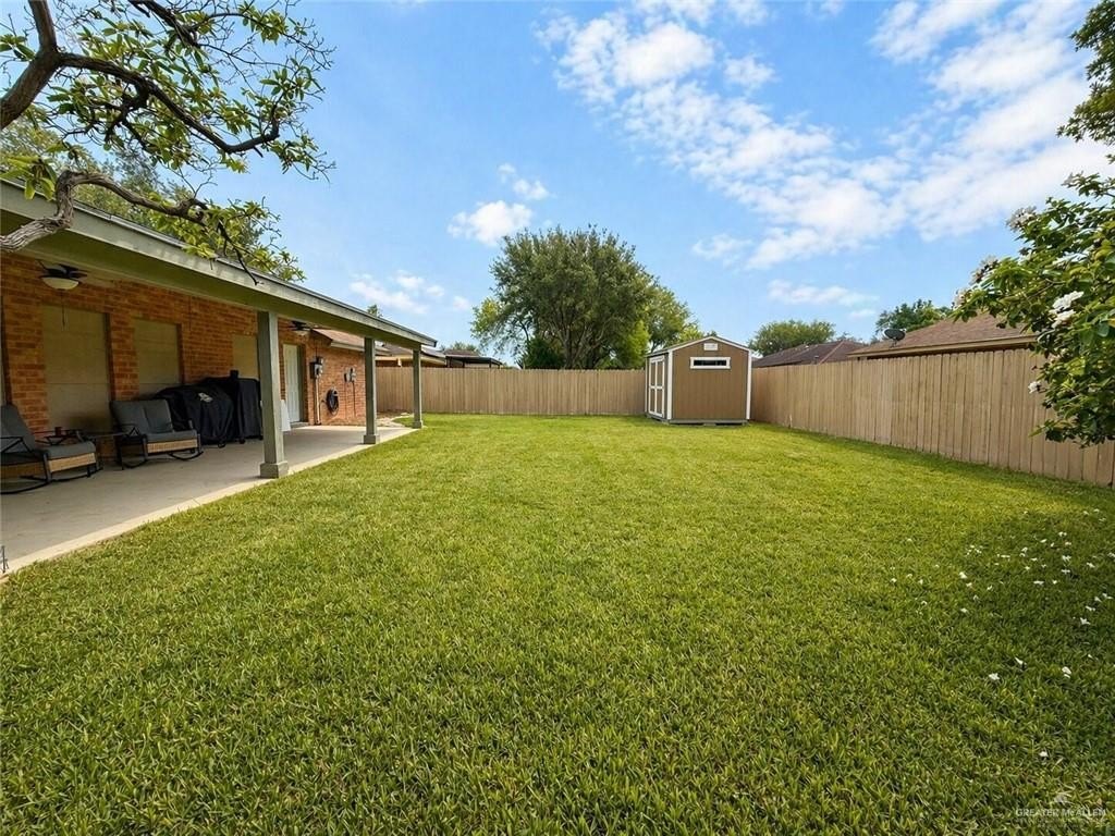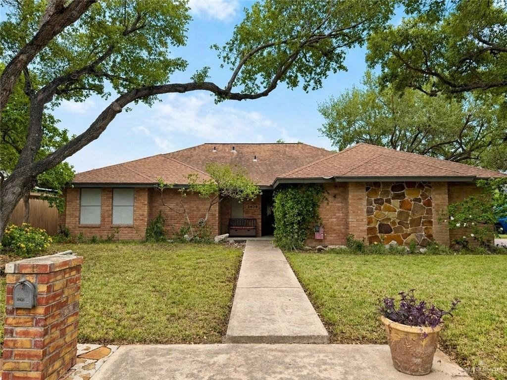 Beautifully maintained corner-lot home in a prime McAllen location near N 29th & Lark! This inviting residence features a spacious layout filled with natural light and wood-look tile flooring throughout the main living areas. The kitchen offers dark cabinetry, granite countertops, and a stylish backsplash, flowing seamlessly into the dining and living spaces-perfect for everyday living and entertaining. The primary suite provides a comfortable retreat, while the bathrooms showcase updated finishes, including modern vanities and a sleek walk-in shower with glass enclosure. Step outside to enjoy a generous backyard with a covered patio, ideal for relaxing or hosting gatherings. Conveniently located near shopping, dining, schools, and major roadways, this home offers both comfort and accessibility.