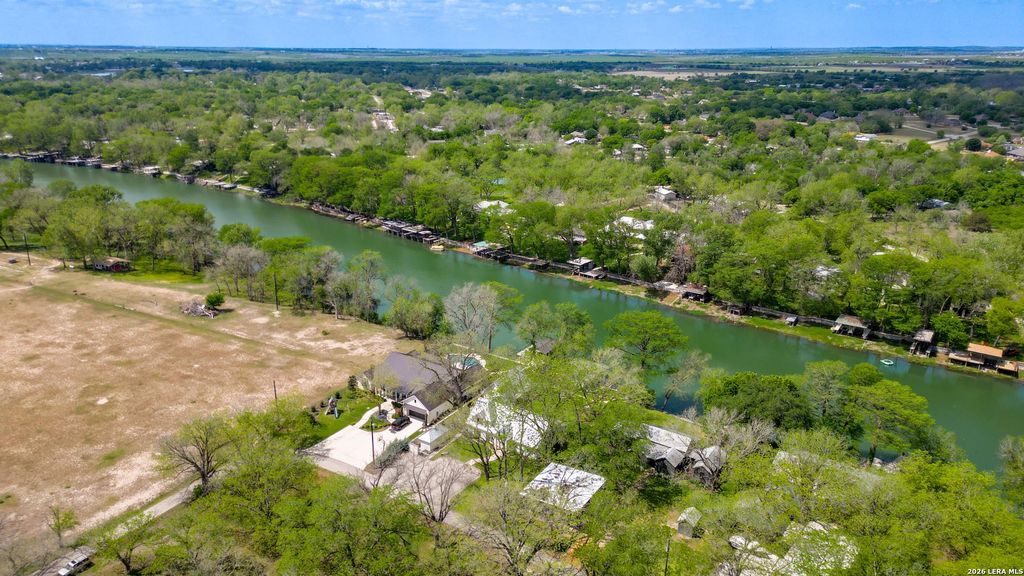 Welcome to the lake life on Lake McQueeney! This stunning lake house with a separate guest house, comes fully furnished and is located off 46, in a small gated neighborhood. The main home is 2316 sq ft, 3 bedrooms, 2.5 baths and recently renovated to include the kitchen and both bathroom renovations, updated flooring, lighting, plumbing fixtures, appliances and more! As you enter, you'll be welcomed into the large living/dining/kitchen with a vaulted shiplap ceiling, beautiful wood burning stone fireplace and 3 sets of patio doors that head out to the screened in back porch which spans the width of the house. Downstairs are 2 guest bedrooms with a jack-n-jill bath, plus a laundry space that leads to the powder bath. Upstairs over looking the main living space, you'll find a large primary suite with views of the lake plus a beautifully renovated master bathroom with an elegant claw foot tub and separate shower. Head back downstairs and out the screened in back porch to a stone patio wi