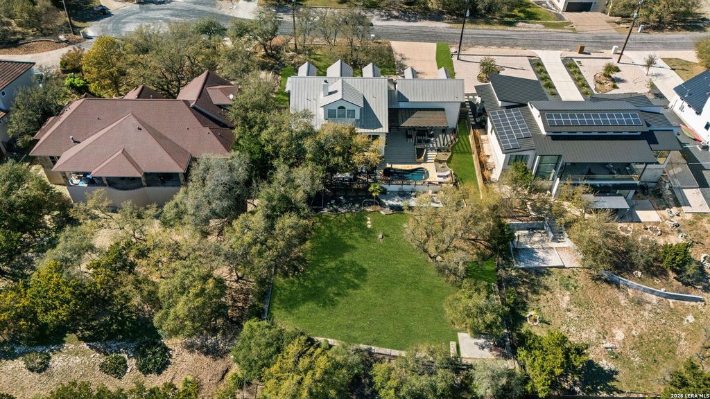 Hilltop views! Located in Timberwood Park, this Hill Country home blends spacious design, thoughtful upgrades, and exceptional outdoor living with scenic views of the surrounding countryside. A large covered front porch and expansive driveway lead to a three-car garage, creating impressive curb appeal and plenty of parking. Property also has a metal roof, adding long-term value and peace of mind. Just off the entryway, a formal dining room and home office provide flexible spaces for entertaining or working from home. The layout then opens into a bright open concept living area where the family room is surrounded by numerous windows overlooking the hills and backyard swimming pool, filling the space with natural light and creating a perfect setting for gatherings. The gourmet kitchen is designed to impress with a large quartz kitchen island, breakfast bar, beautiful backsplash, and stainless steel appliances. A large window brings in abundant natural light while a butler's pantry adds