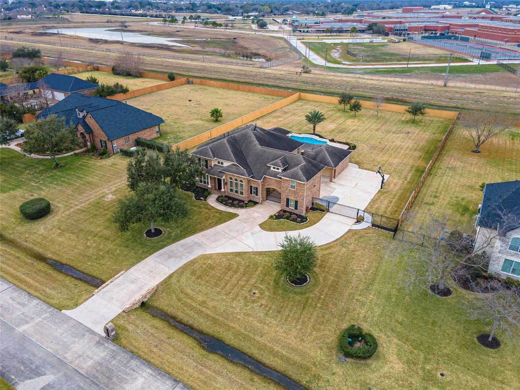 Exceptional David Powers home on 1+ acre with no back neighbors, offering privacy, space & resort-style outdoor living. 2019 renovated backyard is a true showstopper, featuring 50’ covered patio, heated pool with spa, 72” travertine firepit, outdoor sound system & outdoor kitchen w/ EVO flat-top grill, 2 mini refrigerators, & 2 granite serving bars. Landscape lighting, extended driveway, 3-car garage, dual gates & additional parking complete the exterior! Homes features new carpet 2/26, Benjamin Moore paint, 4.5" plantation shutters, wood floors & Forged Steel double doors. Island kitchen features granite countertops, custom-painted 42” cabinetry, 5-burner gas cooktop, built-in oven & microwave, walk-in pantry & hi/lo breakfast bar. Spacious breakfast area & light-filled sunroom complete the space. Upstairs features gameroom, homework station, 20’ x 24’ unfinished bonus room & hidden, lockable room designed for gun/ammo storage-could be hobby or wine room. See Video,Pics & Upgrade List