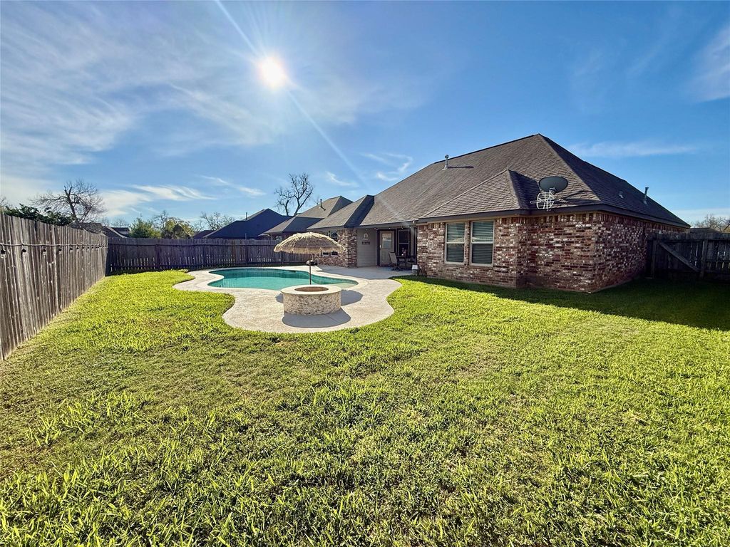 Step into refined comfort with this beautifully designed 2012 SF home in the desirable College Park subdivision. This 3/2/2 residence blends elegance with functionality. The open-concept living area features rich wood-look flooring, seamlessly connecting to a well-appointed kitchen complete with abundant cabinetry & a dedicated dining space.Retreat to the spacious primary suite, where you’ll find a spa-inspired ensuite with double sinks, a relaxing jacuzzi tub, & a separate walk-in shower. Plush carpeting adds warmth to each bedroom, while a dedicated laundry room with extra storage enhances convenience. An added upstairs space provides flexibility for your living needs.Outdoors, your private oasis awaits—featuring a stunning beach-entry pool & a covered back porch perfect for entertaining or unwinding. The fully fenced backyard offers both privacy & space to enjoy.With no HOA & a prime location near schools, parks, shopping, this home delivers both sophistication & accessibility.