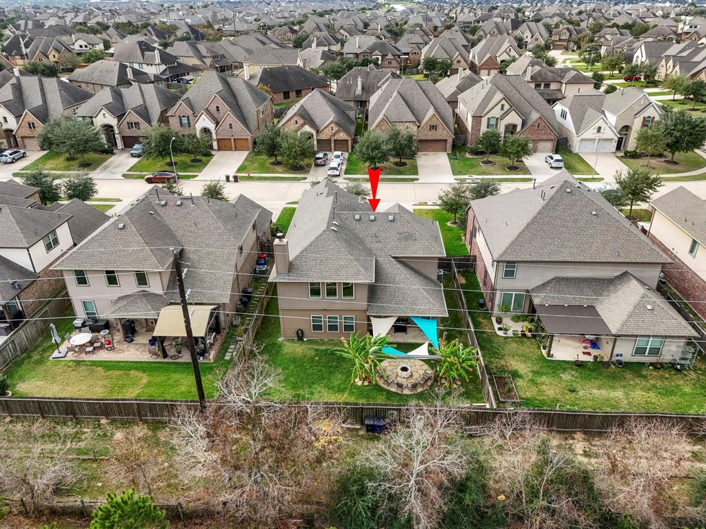 Set against the tranquil backdrop of a neighboring horse farm with no rear neighbors, this brick-and-stone home offers privacy, comfort, and timeless appeal in the heart of Katy. A classic elevation and covered front porch create an inviting first impression. Inside, a soaring two-story living room is filled with natural light. The open-concept kitchen blends function and style with rich wood cabinetry, granite countertops, stainless steel appliances, a gas cooktop, and a generous center island that connects seamlessly to the dining and living spaces. The primary suite provides a private retreat with an en-suite bath featuring dual vanities, a soaking tub, and separate shower. Upstairs, secondary bedrooms are joined by a spacious game room and a dedicated media room, offering flexible spaces for everyday living and entertaining. With no back neighbors, the backyard feels private and serene. Don't miss your opportunity in this sought-after community.