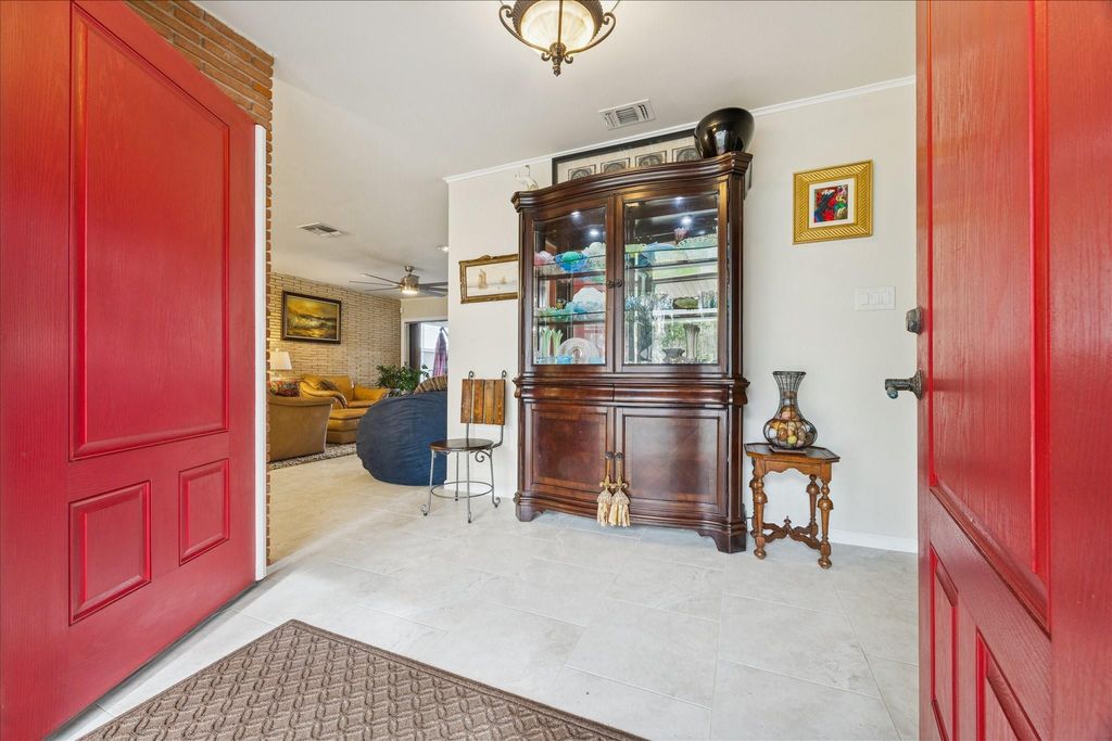 All brick mid-century modern one-story with large windows in every room. Wonderfully walkable historic neighborhood with lots of shade trees. 4000 gallon in-ground pool. Koi pond. Huge covered patio. White vinyl double-pane windows. Walk-in shower, porcelain tile flooring throughout. Recent roof replacement. Fiber optic cable. Home is 30 inches above garage floor and has never flooded.