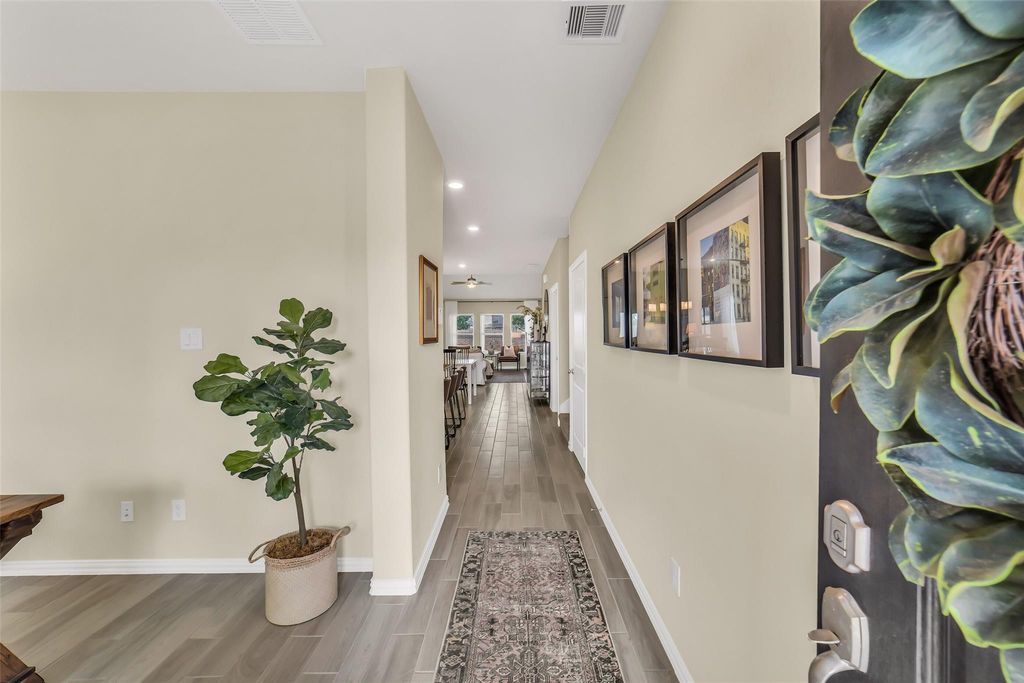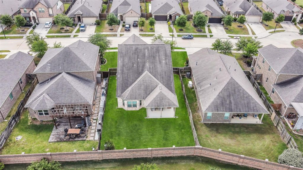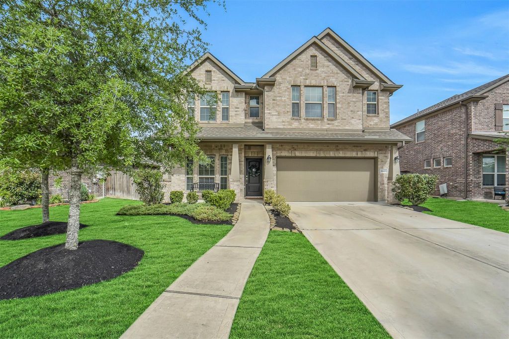 Situated on a quiet cul-de-sac in the master-planned Elyson community, this beautiful two story home offers a prime location with no direct back neighbors and walking distance to the elementary school. Designed for both everyday living and entertaining, the open-concept layout features vaulted ceilings and abundant natural light. The kitchen boasts a large island with breakfast bar seating, stainless steel appliances, and seamless flow into the dining and family rooms. A home office is located at the entry. The spacious 1st floor primary suite showcases a bay window and an en-suite bath with a soaking tub, separate shower, dual-sink vanity, and walk-in closet. Upstairs, an expansive gameroom provides flexible living space. Enjoy the private, fenced backyard with a covered patio. Walking/biking distance to community amenities that include a resort-style pool, fitness center, tennis courts, and playground. Zoned to Katy ISD.