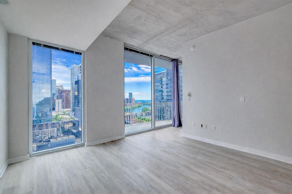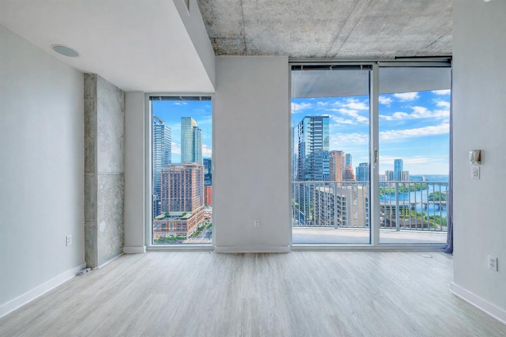 Located in the prime window of height in the building where you're high enough to have an unobstructed water view while seated inside, but not so high that you have to look down on it from the windows. This light and airy east facing unit has a view of Lady Bird Lake meandering under the Congress Bridge and off to the east during the day and the vibrant city lights at night. The open and airy floor-plan with dining nook maximizes the space efficiently. The primary bedroom features dual closets for extra storage. The unit has been well maintained with fresh paint and updated wood style vinyl flooring. 360 Residents enjoy a heated pool, game room, club room with kitchen, fitness center, media room, gated parking, and 24-hour concierge. Located in the heart of West Downtown, 360 residents live a short walk away from Republic Square Park, The Public Library, The 2nd Street District, Lady Bird Lake and numerous retail and hospitality businesses.