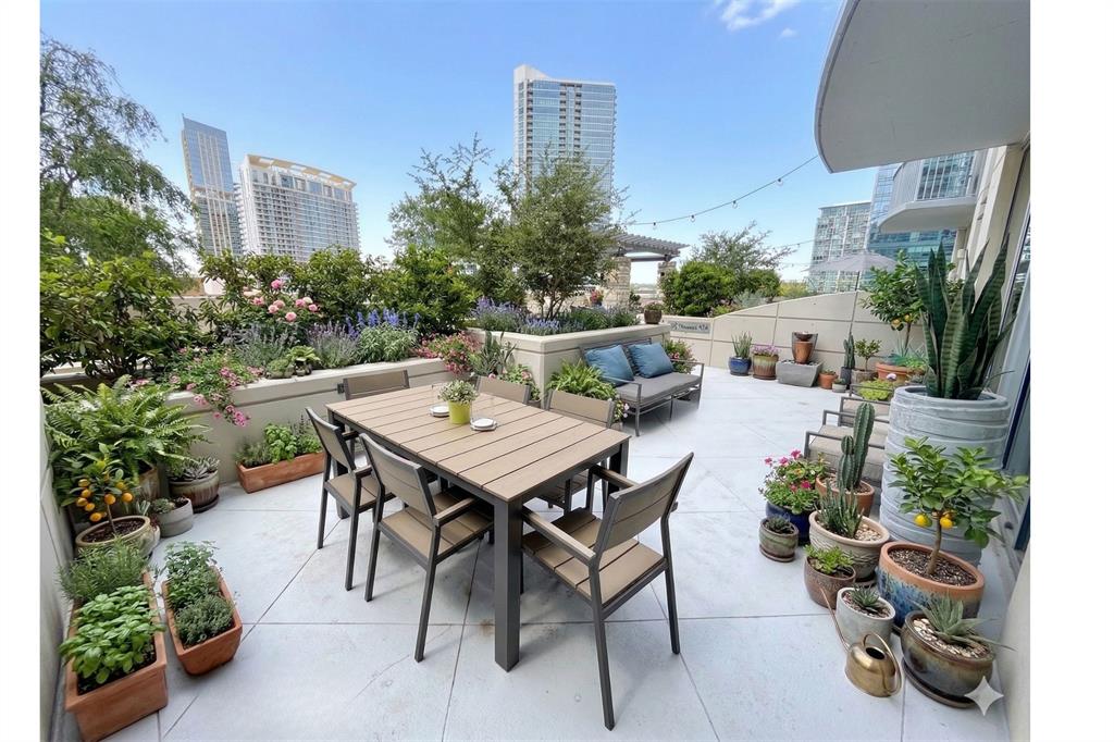 Rare opportunity to own a downtown condo that truly lives like a home, featuring an expansive ~348 sq ft private patio with direct access to the 9th floor amenity deck. This oversized one-bedroom offers 832 sq ft with a flexible layout, including space for a dining area or home office. The open kitchen flows into the living area with a breakfast bar, ideal for entertaining. The spacious bedroom offers added privacy with a true enclosed layout and features a large walk-in closet, along with a dual vanity bathroom for added functionality. Enjoy seamless indoor-outdoor living with your private patio just steps from the pool, grills, fitness center, and club room. Located in the heart of downtown, offering walkability with the added benefit of exceptional outdoor space—something rarely found in condo living.