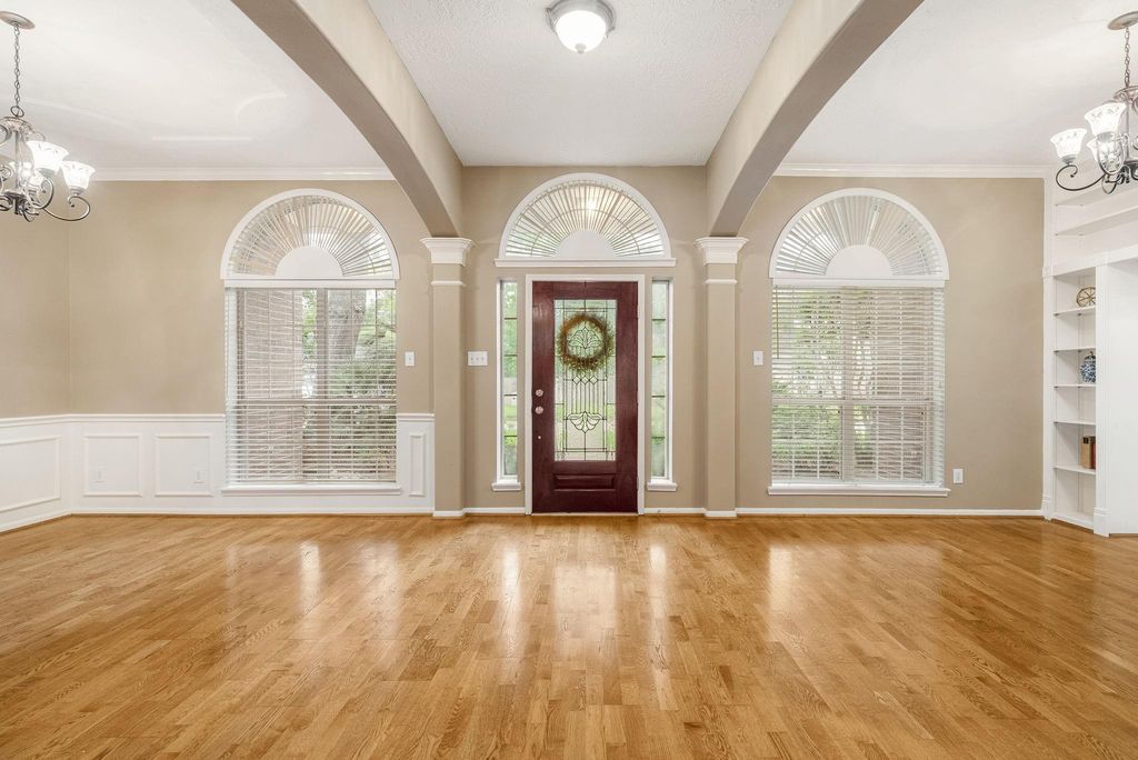Beautifully appointed home in the sought-after Northampton community—an active neighborhood attending top-rated Klein ISD schools, and convenient access to Grand Parkway (99) and I-45. An inviting front porch sets the tone, while inside, rich wood floors and elegant crown molding add warmth and sophistication. The open family room features a cozy fireplace, creating a welcoming space for everyday living and entertaining. A private study downstairs offers flexibility and can easily serve as a 4th bedroom. Upstairs, enjoy a spacious game room, dry bar, and large secondary bedrooms. Step outside to an incredible outdoor living space complete with a pool, spa, waterfall, flagstone paths, mature trees, and a large covered patio. A 3-car garage with a workbench adds functionality. Close to Exxon, shopping, dining, and the Willow Creek Golf Course within the community. Community amenities include tennis and pickleball, parks, a pond, nature trails, area pools, splash pad, and GOLF!