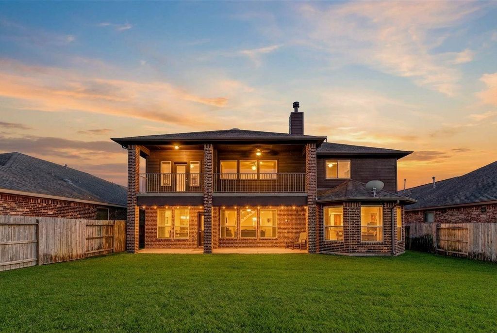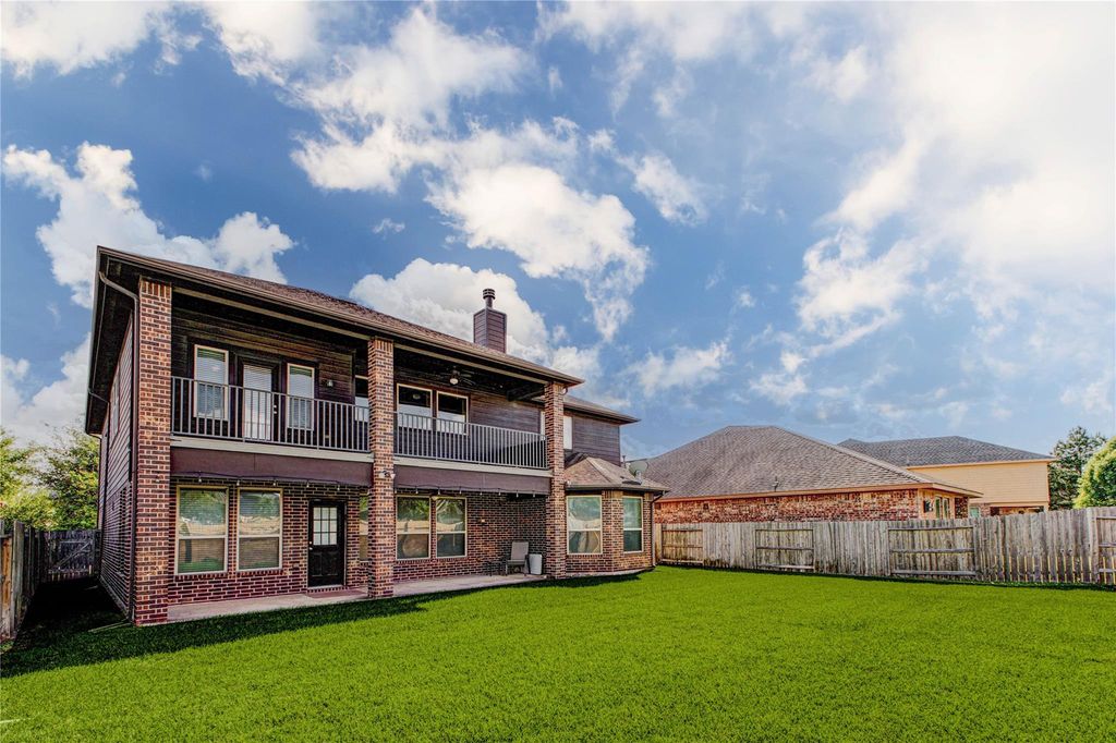 Welcome to this beautifully designed 6-bedroom, 4 full bath home offering exceptional space, comfort, and versatility in one of Fulshear’s most sought-after communities. Thoughtfully designed with two bedrooms downstairs, this layout is ideal for multi-generational living. The open-concept main level showcases soaring ceilings, a striking stacked stone fireplace, and a modern kitchen featuring granite countertops, ample cabinetry, and seamless flow to the dining and family areas—perfect for everyday living and entertaining. The first-floor primary suite provides a private retreat, while a secondary bedroom offers convenient access to a full bath. Upstairs, discover four spacious bedrooms, a large game room, and a charming private balcony for added relaxation. Enjoy outdoor living in the spacious backyard with a covered patio and room to create your dream pool. Located in Churchill Farms, residents enjoy resort-style amenities, scenic trails, and access to top-rated Katy ISD schools.