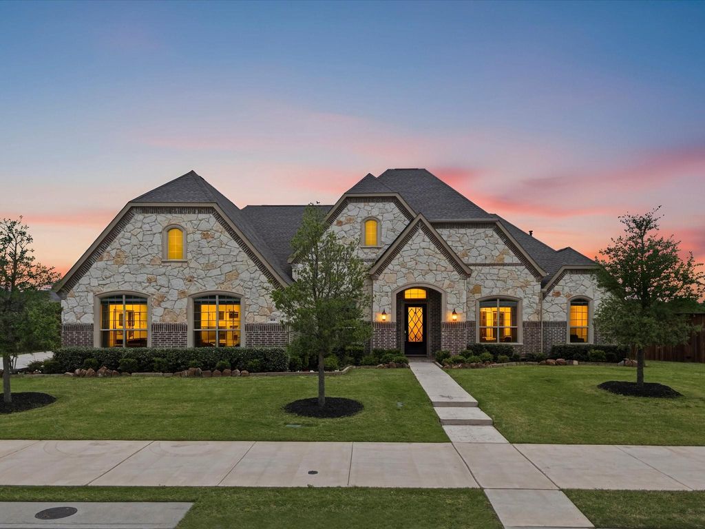 Welcome to refined modern living in the highly sought-after Gean Estates community in Keller. Built by Lennar Homes in 2024, this stunning 3,168 sq ft home perfectly blends luxury, functionality, and serene surroundings. Situated on an expansive .82-acre lot with no rear neighbors, this property offers unmatched privacy and picturesque views of a peaceful pasture with grazing horses—plus breathtaking sunrise views you’ll look forward to every morning. Inside, the home is filled with natural light from abundant windows, highlighting the open-concept design and high-end finishes throughout. The chef’s kitchen is a true showstopper, featuring a 6-burner gas range, ample counter space, and seamless flow into the main living area—perfect for entertaining. The living room impresses with a dramatic floor-to-ceiling fireplace and a custom-built bar complete with a wine fridge, creating the ideal space to relax or host guests. The oversized primary suite is a private retreat, offering a spacious bedroom, spa-like bathroom, and an expansive walk-in closet. Additional highlights include: • 3 bedrooms, 3 bathrooms • 4-car garage with plenty of room for storage • Two spacious dining areas • Oversized laundry room • Dedicated office Step outside to a large covered back patio, perfect for enjoying the peaceful setting and wide-open views. Located within walking distance to Keller High School, and just moments from scenic walking trails and a beautiful neighborhood pond, this home offers both convenience and tranquility. This is a rare opportunity to own a nearly new, thoughtfully designed home on a premium lot in one of Keller’s most desirable communities.