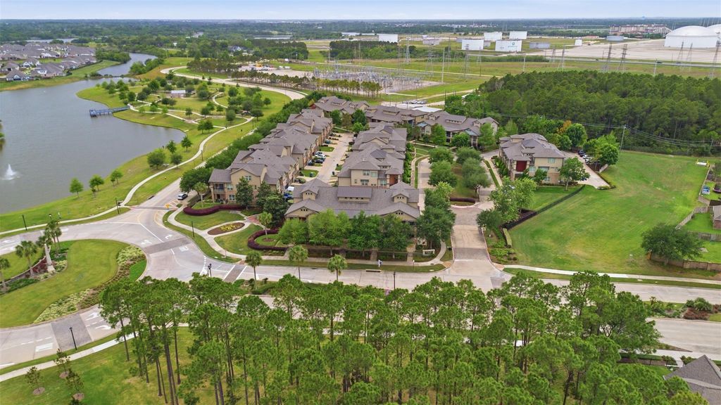 Easy lock and leave living in picturesque Edgewater, known for its iconic palm tree lined streets, lakes, and water features. This three story townhome includes an elevator shaft and whole-home water filtration system. First floor offers open concept living with wood-like flooring, powder room, built in office area, attached garage w EV charger and epoxy flooring. Second floor features 3 BR and 2 full baths. Third floor includes a gameroom w/ dry bar and powder room, ideal as a fourth bedroom or flex space. Fresh paint throughout! Enjoy a tropical inspired setting w/ walking trails, wooden benches, lakeside views, & 25 acres of protected wetlands. Community amenities include playground, resident pavilion, lakeside dock, fishing pier, creek overlook, open green space, and two dog parks. Minutes from Armand Bayou Nature Center, Kemah Boardwalk, Great Wolf Lodge, and Big League Dreams Sports Park. Easy commute to Houston or Galveston. Perfect for those who prefer low maintenance living.