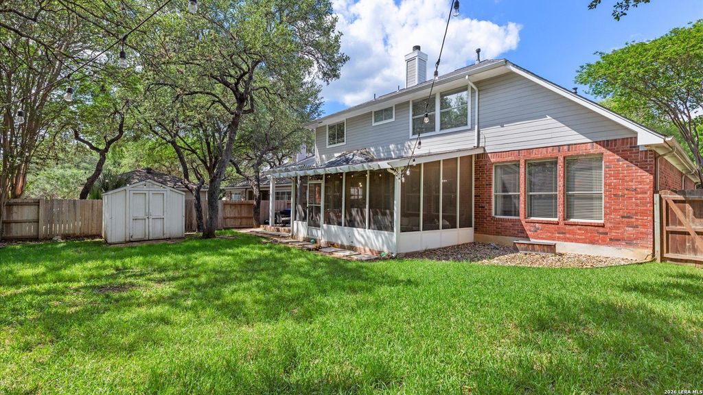 Located in the gated Blanco Bluffs community, this impressive residence offers a spacious, thoughtfully designed layout with upscale finishes throughout. Step inside to soaring ceilings and rich Brazilian cherrywood floors that flow seamlessly through the main living areas, creating an elegant yet inviting atmosphere. The chef-inspired kitchen serves as the heart of the home, featuring quartz and quartzite countertops, an oversized Blanco sink, under-mount LED lighting, a gas cooktop with pot filler, and white cabinetry, perfectly designed for both everyday living and elevated entertaining. The private primary suite is a true retreat, highlighted by a fully renovated, spa-like bath with exceptional tile work and dual closets. A versatile study on the main level offers the flexibility to function as a guest suite or additional bedroom, with a full bath conveniently located just outside, ideal for multigenerational living or a private office. Throughout the home, all bathrooms feature el