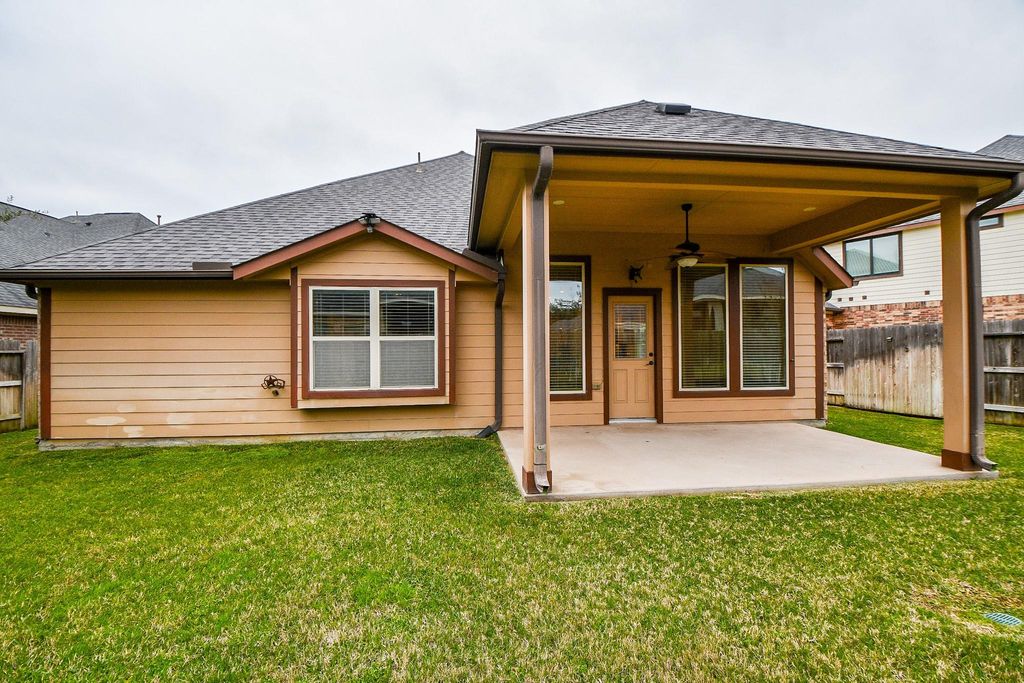This stunning home is located in the sought-after Hayden Lakes community. With three bedrooms, two baths, and a dedicated home office, this home is perfect for both comfort and productivity. The naturally lit open floor plan features laminate wood floors, a spacious covered patio, and a luxurious master suite with a spa shower and window seat. The open kitchen seamlessly flows into the family room, creating an inviting space for entertaining. Upgrades include high ceilings, white cabinets, exotic granite countertops, in-ceiling surround sound speakers in the living space and patio, enhanced lighting, new appliances, and glass shower doors in both bathrooms. Neighborhood offers fantastic amenities such as lakes, a playground, pool, walking and jogging trails, and a dog park. Conveniently situated in the highly rated Tomball ISD with easy access to the Grand Parkway and Highway 249, this home combines style, functionality, and a welcoming community atmosphere. A must see!