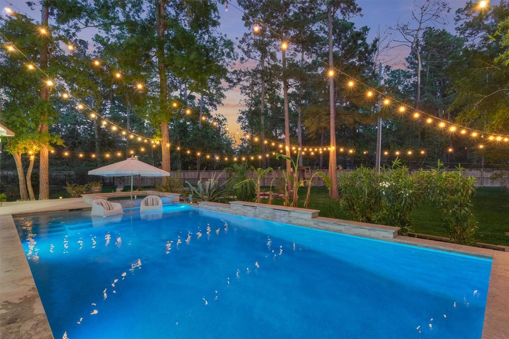 Tucked at the end of a quiet cul-de-sac in prestigious Benders Landing Estates, this beautifully updated 4-bedroom home offers an ideal floorplan, low 1.7 tax rate, and no septic. A grand two-story foyer and sweeping staircase create a stunning first impression, with a formal dining room and private office just off the entry. The renovated kitchen opens seamlessly to the main living area and overlooks the backyard retreat. The primary suite features serene backyard views and a fully redesigned spa-style bath with a spacious closet. Upstairs includes three bedrooms, an oversized gameroom, and a covered balcony. Step outside to your private oasis with a new pool, oversized hot tub, and expansive pavilion with outdoor kitchen—perfect for entertaining. Additional updates include a new roof (2024) and an oversized garage with built-in storage. This home blends privacy, modern upgrades, and exceptional outdoor living.