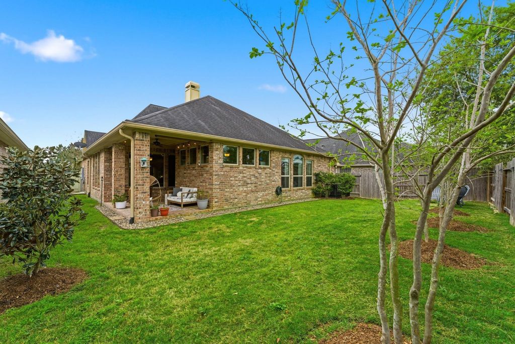 9942 Beautyberry is listed for sale at $ 459,000. The Single-Family property has 3 bedrooms, 3 Full Bathrooms, 2638 square feet and was built in 2015. The lot size is 6970 Square feet. ##BR##Former model home on a quiet street in Harper’s Preserve! NEW wood-look flooring and NEW A/C! With a quaint front porch, tall ceilings and large windows, this charming home is full of luxury upgrades. Kitchen boasts a butler’s pantry, an elevated cabinetry and backsplash, stainless steel appliances, and granite countertops. Spacious primary features ensuite with resort style bath featuring premium countertops, custom tile work, a soaking tub, a walk-in shower with a bench, and an oversized closet. Peaceful flex room featuring French doors is tucked away and can be used as a study, play room, or sunroom. Two additional bedrooms have their own full bath, also with premium fixtures and countertops, one featuring an en suite with a walk-in shower. Enjoy the large covered patio overlooking the plush backyard adorned with trees. HOA covers Front lawn maintenance. Close to parks, walking trails, two neighborhood pools, top-rated Suchma Elementary and The Woodlands!