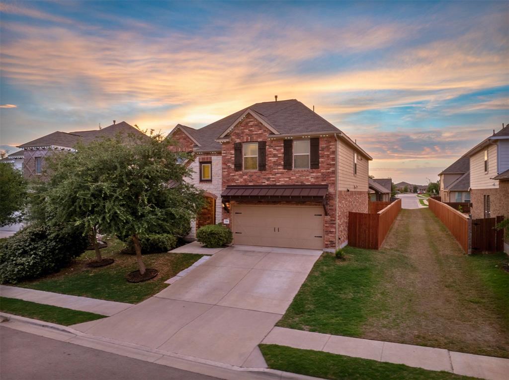 Experience a home that seamlessly blends timeless elegance with modern comfort. Beautifully maintained and featuring a striking limestone-and-brick exterior framed by mature front-yard trees, this two-story residence makes an immediate impression in the highly sought-after Sunfield community of Buda, TX. The home offers 4 bedrooms, 2.5 baths, a dedicated downstairs office, and a spacious upstairs game room or flex space which is perfect for a second living area, media room, playroom, or home gym. Step inside to a bright, inviting interior highlighted by a vaulted entryway, elegant hardwood flooring, and abundant natural light streaming through large windows overlooking the scenic backyard. The kitchen features a center island, stainless steel appliances, granite countertops, and generous cabinetry, all flowing effortlessly into the open living and dining areas. The owner’s suite provides a peaceful retreat with double vanities, a walk-in closet, a walk-in shower, and a relaxing soaking tub. Fresh interior touch-ups throughout and brand-new laminate flooring upstairs create a crisp, move-in-ready feel throughout. Pride of ownership shines, this home has been meticulously cared for and maintained in exceptional condition. The downstairs office is a standout feature, offering custom built-in shelving, French doors, and convenient proximity to the half bath which is ideal for hosting guests without needing to access the upstairs living areas. Additional features include a 2-car garage with insulation and opener, an irrigation system, a water softener, and overhead garage storage. Located in the popular Sunfield neighborhood, residents enjoy easy access to historic Downtown Buda, Main Street shopping and dining, and community events. The home is just minutes from I-35 and SH-45 Toll, providing a smooth commute into Austin. This is a wonderful opportunity to own a beautifully maintained home in one of Buda’s most desirable communities.
