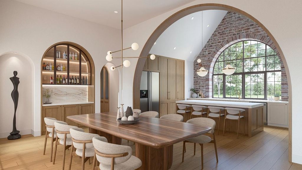 Inspired by classic Tudor architecture, the exterior blends rich brick with soft stucco accents, creating a timeless presence. Natural light pours through oversized windows, highlighting the soft tones, clean lines, and the craftsmanship of custom white oak cabinetry. The kitchen anchors the space with a large island, GE Monogram appliances, and a walk-in pantry complete with its own sink and microwave. In the living room, a sleek electric linear fireplawith a custom Leon Frame. Tucked away, the glass-enclosed wine room adds a layer of sophistication. The primary suite is spacious and private. The bathroom is where that experience is elevated, featuring a full quartz slab shower with a block panel design and a freestanding tub. Built with a high-performance approach including ZIP System with ZIP R3, advanced HVAC, fresh air ventilation, and dehumidification, this 4-car garage home delivers exceptional comfort, efficiency, and long-term durability. Zoned to CISD & LOW TAX RATE