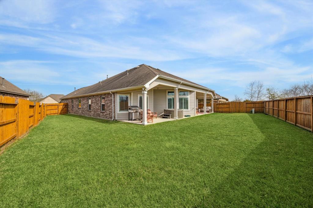 Gorgeous 1-story home with big, open spaces! Shows like a model with New Carpet and Paint throughout (2025). Need a home/office? This one is dynamic with lots of privacy which could be 4th bedroom. Beautiful Plantation Shutters throughout! Primary bath has shower with bench and soaking tub. Primary bedroom is huge with extra sitting space. Double rear patios, one with a Hot Tub off the Primary suite! The kitchen is dynamic with lots of space and island breakfast bar + breakfast room! Full coverage sprinkler system to accommodate huge yard on quiet cul-de-sac lot. Great location with access to 288, Beltway 8, and Fort Bend Toll Road! There is lots more to this house than meets the eye, so be sure to schedule your private tour today!