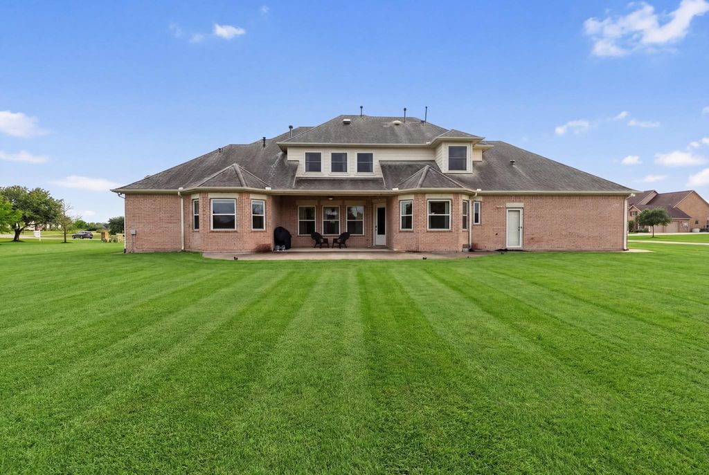 A rare find in the prestigious Lakes of Mission Grove, this custom-built Partners in Building home offers luxury and charm on an expansive one-acre lot with a low tax rate. Boasting 4 bedrooms and 3.5 baths, this residence is designed for both elegance and functionality. Inside, soaring ceilings, wood and tile flooring, and a chef’s kitchen with a five-burner gas cooktop, Cambria quartz island, and walk-in pantry create a space that’s both stunning and practical. The first-floor primary suite features a spa-like bath and oversized walk-in closet, while a second downstairs bedroom includes its own private bath. Upstairs, enjoy two additional bedrooms, a game room, and an executive study. Set in a community known for its spacious lots, century-old trees, and shimmering lakes, this home offers proximity to top-rated LCISD schools, major highways, and local amenities—all with no MUD tax. This is more than a home; it’s a lifestyle. Make it yours!