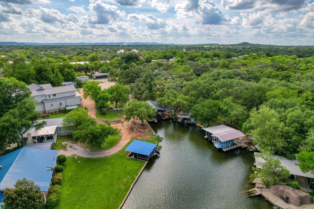 Nestled on nearly one acre along a private cove on Lake LBJ, this rare waterfront opportunity offers 45+ feet of shoreline near the coveted Colorado Arm. Gently sloping to the water, the property features a private dock with an electric boat lift, majestic mature trees, striking native rock outcroppings, and a fully irrigated yard that creates an exceptional lakeside setting. Positioned at the top of the property near the road sits a 3-bedroom, 2-bath double-wide manufactured home offering potential for renovation or a fresh start for your dream waterfront build. Offered as-is, this property is ideal for investors, builders, or buyers looking to create a legacy property surrounded by multi-million dollar homes. With no HOA or POA and short-term rentals allowed, the possibilities are wide open-whether for personal enjoyment, redevelopment, or income-producing potential. Connected to Kingsland Water Supply and KMUD sewer, this is a rare chance to secure a prime piece of Lake LBJ waterfront in an increasingly sought-after location.