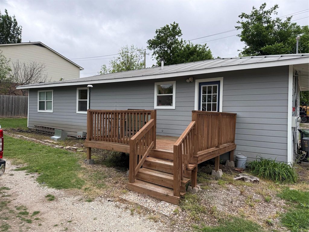Welcome to 509 E First Street, a beautifully updated home nestled in the heart of historic downtown Prosper. This charming 3-bedroom, 2-bath residence offers approximately 1,336 square feet of thoughtfully designed living space, blending modern upgrades with small-town charm. Step inside to discover a bright, open layout featuring updated flooring, recessed lighting, modern fixtures, and stylish finishes throughout. The renovated kitchen boasts quartz countertops, stainless steel appliances, custom cabinetry, designer tile flooring, and open floating shelves, creating a clean and contemporary feel perfect for everyday living or entertaining. The spacious living areas provide flexibility for both relaxation and work-from-home functionality, ideal space for a home office, guest suite, or flex room. Outside, enjoy the expansive yard with plenty of room to entertain, garden, or expand. Additional highlights include a durable metal roof with solar panels that keep your Electrical bill at near zero ! . Solar panels are owned and NOT leased. fresh exterior paint except the trim, updated curb appeal, a large backyard deck area, mature trees. Located within highly sought-after Prosper ISD and just minutes to downtown Prosper shops, dining, and future redevelopment, this move-in-ready property offers a rare opportunity to own a stylishly renovated home in one of Prosper’s fastest-growing and most desirable areas. Don’t miss your chance to own this unique property in the heart of Prosper.