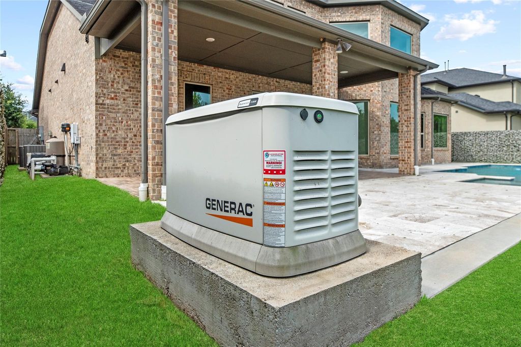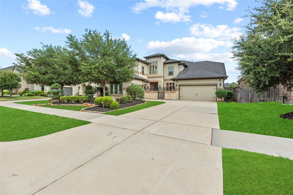 Welcome to this beautiful 2 story former NEWMARK Model 70’ Castilian home offering luxury, comfort and thoughtful design at every turn.Situated in the very desired Cross Creek Cove & within walking/biking distance to nearby Katy ISD schools, this home features 5 bedrooms (2 down) and 4.1 baths.A gated front entrance opens to a flagstone courtyard and outdoor fireplace. Step into the grand entry to find beautiful porcelain tile flooring, wood staircase, coffered ceiling with picture windows allowing light & bright natural lighting throughout.The open concept layout is designed for comfort and entertaining and includes a study, dining room and a large game room, wet bar and media room upstairs.The chef style island kitchen is complimented by high end Ceasarstone countertops, upgraded modern cabinetry and Electrolux Icon appliances throughout.Beautiful covered patio custom pool & spa & a private backyard with no back neighbors!24KW whole house generator incl.