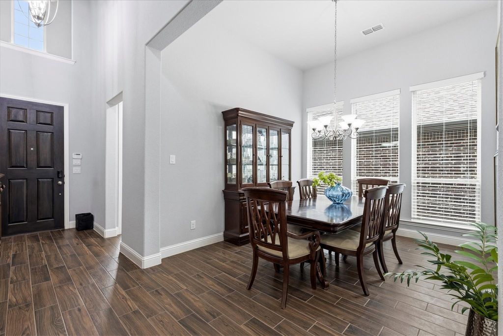 Come be a part of the Light Farms lifestyle! This home is perfectly situated on a spacious corner lot with scenic water and trail views—ideal for peaceful morning walks and sunset strolls. Step inside to discover a thoughtfully designed layout. The main floor features a private guest suite, formal dining room, dedicated home office, and an open-concept kitchen and living area that flows seamlessly onto a covered back patio—perfect for evening cookouts and outdoor entertaining. The luxurious primary suite offers a serene retreat with a spa-like bathroom. Upstairs, you'll find a generous game room and three additional oversized bedrooms, along with two full bathrooms—plenty of space for family and guests. All new carpet throughtout and new roof in 2025! Enjoy the unbeatable lifestyle that Light Farms has to offer, including miles of trails, multiple pools, tennis and pickleball courts, bocce ball, sand volleyball, a dog park, scenic lake with a sandy beach and campsites, fitness center, community events, the Nook restaurant with poolside service, beautiful parks, and top-rated Prosper ISD schools. Make this summer and many more unforgettable in your new Light Farms home—schedule your tour today!