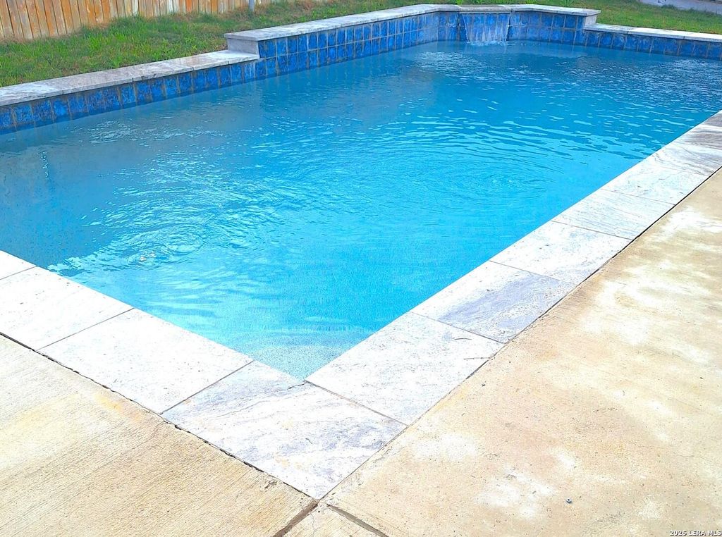 Fabulous outdoor POOL installed 2022 with adjoining extended patio. Updated and beautiful. Spacious 4 bedrooms plus an office, 2 living areas. Kitchen features stainless appliances, granite counters, tile backsplash, and a breakfast bar. High ceilings. Fabulous dual shower head spa-like shower. Fresh paint. New carpet in the bedrooms. 2 inch blinds are included. Gutters. Beautiful stone and stucco facade. New AC and heat system 2026.