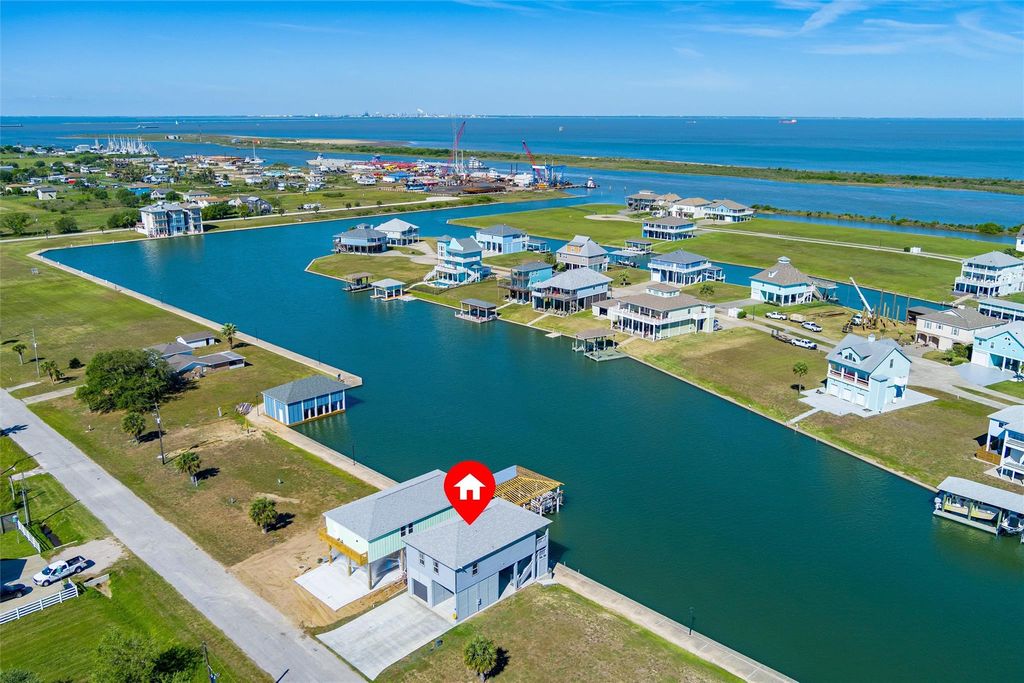 Welcome to this newly built (2023) 3 bed, 2 bath canal front property in Laguna Harbor. Enjoy stunning views of the canal and ICW with beautiful sunsets to admire. This home features a spacious garage (15'x24') and is the perfect location for a boat house with direct access to Galveston Bay. The open kitchen, living, and dining area provide a great space for entertaining. The primary bedroom boasts an ensuite bath for added convenience. Don't miss the opportunity to fish right from your own backyard. Plus, some appliances are included with the house. A must-see waterfront gem!