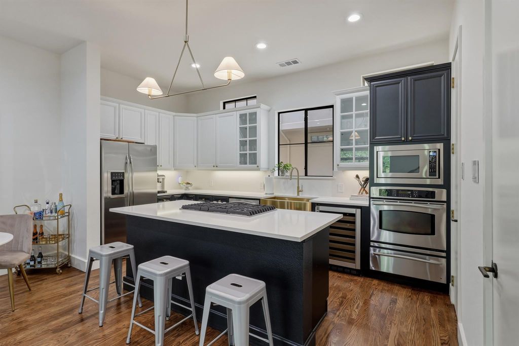 A stunning $100k kitchen renovation features custom navy cabinetry, quartz countertops, high-end stainless-steel appliances, and a generous island that seamlessly connects to the living and dining areas. The home has been fully updated from floor to ceiling, including brand new hardwood floors, fresh paint, and updated lighting throughout.The expansive primary suite is a true private retreat, complete with a spa-inspired bathroom offering dual vanities, a walk-in shower, and a stand-alone tub. Secondary bedroom with en-suite bath offers flexibility for guests, while the third room can serve as a home office space or nursery. An expansive rooftop deck is the crown jewel of this home, featuring a built-in-bar and ample lounge seating, all set against breathtaking panoramic views of the Dallas skyline.Additional highlights include a two-car attached garage, ample storage space, and a wired Sonos surround sound system. Located just steps from Uptown’s best dining, shopping and nightlife, with close proximity to the Griggs Park, Katy Trail, West Village, this home delivers an unmatched urban lifestyle of convenience and luxury in one of Dallas’s most iconic neighborhoods.