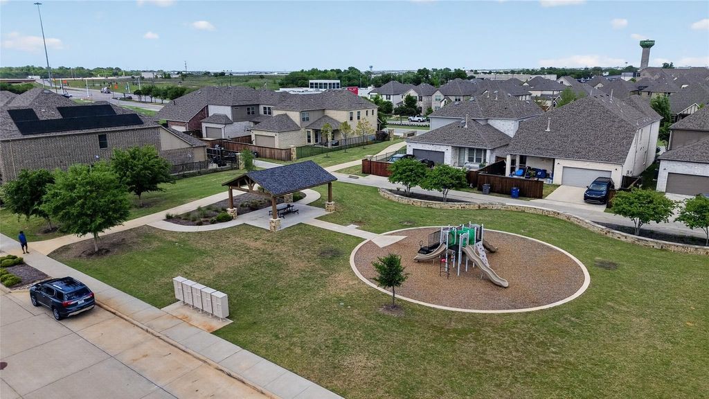 Experience the pinnacle of sophisticated urban living in this pristine end-unit townhome, perfectly positioned to offer the ultimate blend of style and convenience. From the moment you step inside, the extensive wood-look tile flooring and elegant wrought iron spindles set a tone of modern luxury that flows throughout the open-concept floor plan. The chef in your family will love the sleek kitchen showcasing quartz countertops, stainless steel appliances, an island with a breakfast bar, and chic gray cabinetry that perfectly complements the contemporary aesthetic. Rare and highly sought-after, this layout boasts two full primary suites, providing unparalleled flexibility for multi-generational living or a high-end guest retreat. Unwind in the third-floor penthouse-style primary suite, where you can step out onto your massive balcony to enjoy the fresh air and sunset views. Outside your door, the Windermere community features a resort-style lifestyle with access to a sparkling swimming pool, playground, dog park, and greenbelt. Complete with a spacious two-car garage and a prime location near major highways and DFW Airport, this home offers the connected, low-maintenance lifestyle you have been searching for. Take a first-person look at this gorgeous home! Click the Virtual Tour link to see the 3D Tour!