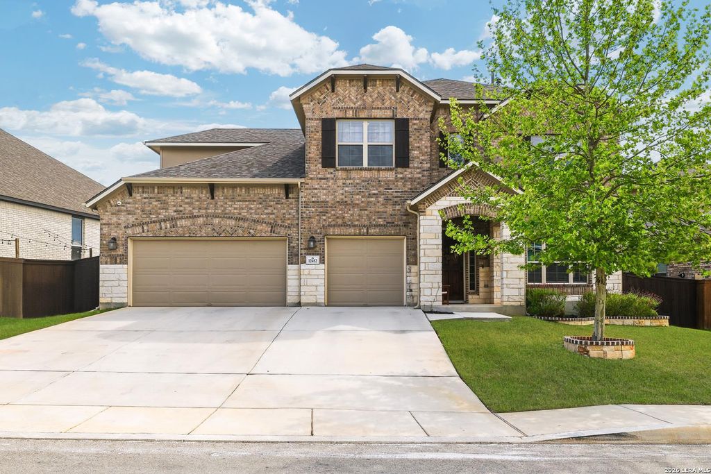 Designed for flexibility and everyday comfort, this 4-bedroom, 3.5-bath home in Westpointe Fronterra includes a private office, media room, and spacious loft, offering multiple living areas and thoughtful storage solutions throughout. The open-concept design features an oversized living room with a custom electric glass enclosed fireplace and built-in library shelving, creating a comfortable space for gathering or relaxing. The kitchen includes a gas drop-in range, built-in wall oven and microwave, abundant cabinetry, and generous counter space. A separate private office with French glass doors provides an ideal workspace or quiet retreat. The home also features a mud room for added organization and a spacious laundry room with built-in countertop and cabinetry for convenient folding and storage. The primary suite includes tall bay windows and tray ceiling details. The primary bathroom offers a garden tub, oversized walk-in shower with bench seating, double vanities with addition