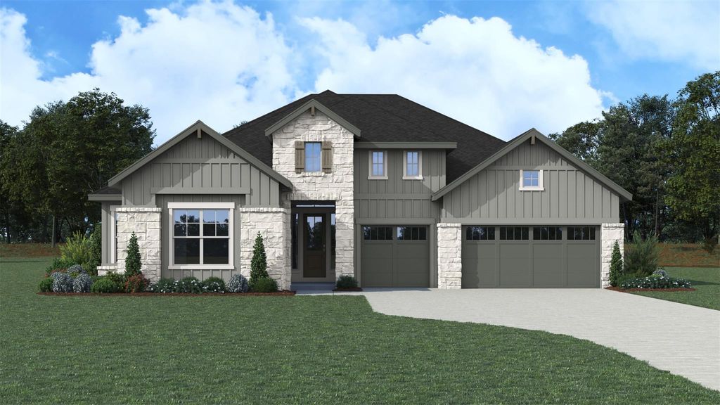 Beautiful 1 story home greets you with 8’ double doors to 12’ ceiling entry. Entertain your family and friends in open island kitchen with double ovens, stacked cabinets, 5 burner gas cooktop, and double trash pull outs bins that opens to dining and great room. Relax in large great room with corner fireplace and 12x8 glass sliding doors that look out to big, covered patio. Study/flex room perfectly placed at front of home away from main areas. Plenty of room for your vehicles in the 3-car front load garage. It's about to start construction so its not too late to personalize your selections!