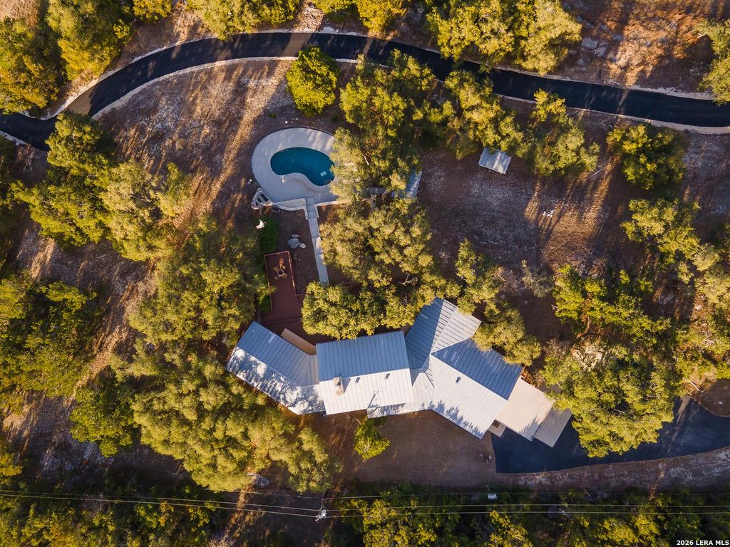 AMAZING VIEWS! SPECTACULAR STAR LIT NIGHTS! Remote-Open GATE! Modern-Rustic Style, Hill Country Estate on 4.26 wooded Acres. (View video tour). NEW ASPHALT ROAD! NEW REMOTE ENTRY GATE! FREE WATER! Unrestricted DEEP WATER WELL w/Chlorinator. LIKE NEW! 3 Bedroom 3 Bath home includes 2 Master Bedrooms and 2 Master Baths on the First Floor. This modern yet rustic style home is beautifully designed with a cozy feel, yet opens wide to the outdoors by way of the large, wood-framed, glass wall-style doors, bringing the outdoors in! Nights and evenings are breathtaking on the deck or the heated pool, with spectacular views of the stars, planets, or, during the day, the amazing countryside! This perfect home has lots of character and modern luxuries, ready to entertain family and friends. Plenty of parking for RV, Boat, or business vehicles, and equipment. Beautiful open floor plan with a kitchen featuring stainless steel appliances, a golden flake backsplash, large custom cabinets, p