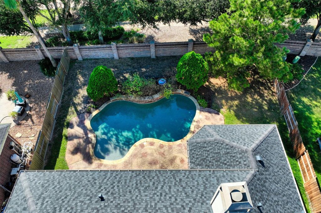 Gorgeous home-the LOWEST PER SQ FT PRICE w/pool zoned to 7 Lakes HS w/3 CAR GARAGE! Soaring ceilings, warm, chevron wood-look tile floors, & BEAUTIFUL PLANTATION SHUTTERS. NO CARPET IN THIS HOUSE! A private study w/French doors is perfect for working from home. The chef’s kitchen features granite countertops, tile backsplash, stainless appliances, & opens to a spacious den w/a stunning stone fireplace. This home includes a whole home water softener, reverse osmosis under the sink, washer, dryer & refrigerator. NEW ROOF in 2023! Upstairs, the gorgeous wood look tiles continue- enjoy a large game room, media room, & 3 generous bedrooms w/2full baths & a bonus 10x10 SECRET ROOM, perfect for storage, man cave, 2nd office, or a VERY SPECIAL PLAY ROOM! The 3rd bay in the garage has been enclosed & has a sink- could be an art studio, workshop, storage, or easily opened back up. The backyard is designed for entertaining w/a stamped concrete patio & sparkling pool. A must see!
