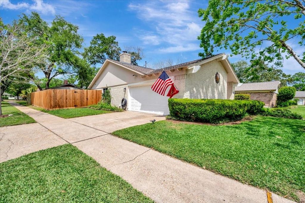 Thoughtfully updated and filled with natural light, this beautiful 4-bedroom, 2-bath home pairs classic mid-century exterior architecture with a beautifully modern interior. The open-concept layout creates an effortless flow between the living, dining, and kitchen areas ideal for both everyday living and entertaining. The kitchen serves as the heart of the home, featuring a large island, quartz countertops, stainless steel appliances, gas range, and farmhouse sink. The living area is both inviting and distinctive with vaulted ceilings, a striking arched fireplace, and custom built-ins. Extensive updates include windows, patio doors, HVAC, piping, electrical panel, flooring, fence, gutters, and landscaping. Ideally positioned on a cul-de-sac corner lot in one of Clear Lake’s most sought-after neighborhoods, with greenbelt access just steps away and closely located to the local HEB, schools and shopping. Come see, fall in love and make it home!