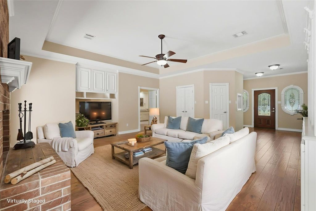 Experience TX living done right in an equestrian community. Begin the day w/ coffee on the wraparound porch/covered patio as the sun rises on 2+ acres, w/ peaceful views of the pond & open space. Evenings invite time outdoors—sunsets by the pool/spa, gatherings around the fire table & meals prepared in the fully equipped outdoor kitchen. This home makes creating memories w/ loved ones effortless. The stocked Koi & Catfish pond adds a unique tranquil touch. A fully fenced with an auto-gated driveway, includes RV garage w/ interior 220V hookup, water, & sewer connections supporting travel-ready convenience. Inside, high ceilings, solid wood cabinetry, custom built-ins, & private office provide functionality, while recent updates include energy-efficient windows, renovated bathrooms, upgraded flooring & more. An adjacent flex/game room offers additional space for recreation/2nd office/guest room/hobbies opportunity. Here's a rare blend of land, function, & outdoor living U shouldn't miss!
