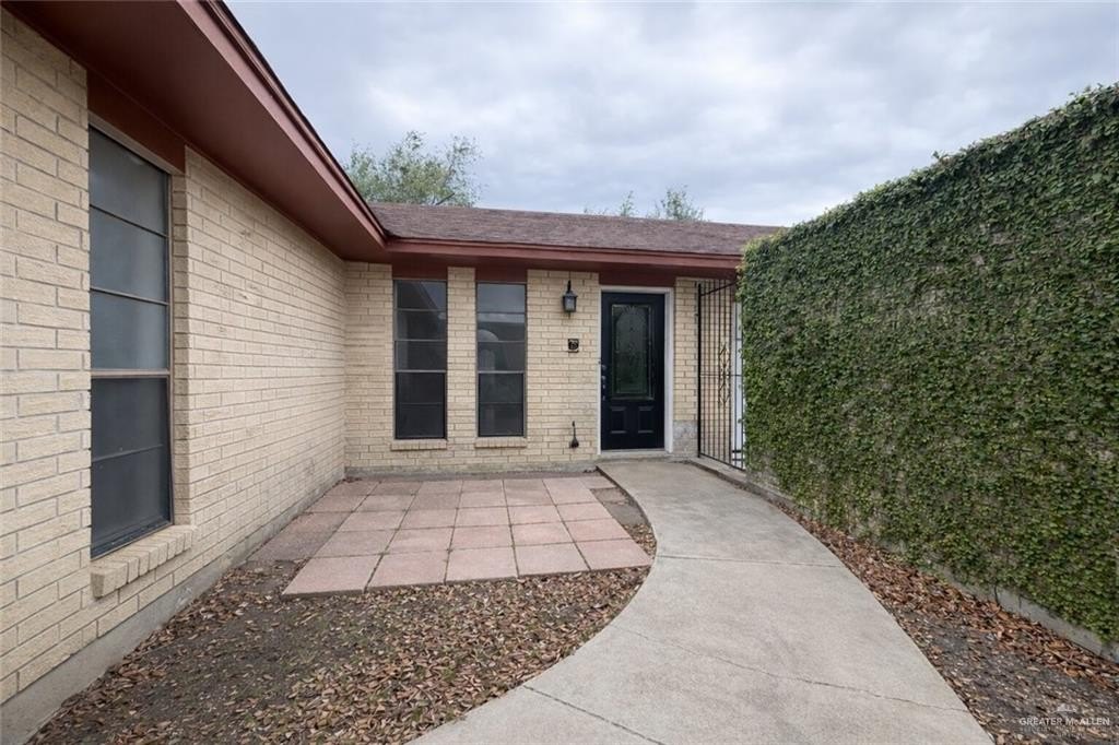 Charming 3 bed, 2 bath home on a quiet cul-de-sac in an established, tree-lined McAllen neighborhood-just 2 minutes from H-E-B and 10th & Nolana. A courtyard-style private patio-perfect for morning coffee-leads you inside, where a beautifully remodeled kitchen becomes the heart of the home, featuring quartz countertops, a large island. Paneled glass doors lead to a walk-in pantry, and laundry with ample storage. Inside, enjoy a functional layout with tons of natural light, two large living areas and generous room sizes that offer flexible use. French doors open to a versatile sunroom. Primary suite with walk-in shower; secret door connects guest bedroom to hall bath. Backyard features a separate fenced pet area with doggy door, multi-use structure, orange tree, and a sprinkler system. Front-entry garage + paved alley access. Mature trees. No HOA. A wonderful opportunity to make it your own while enjoying its thoughtful updates and timeless appeal.