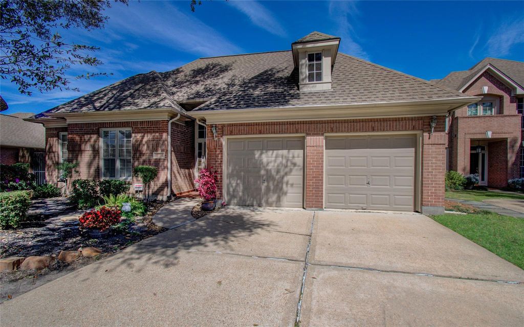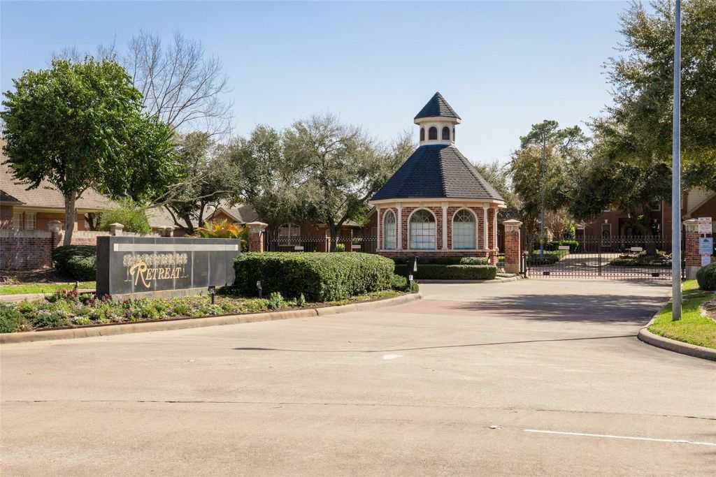 Nestled in prestigious gated community of The Retreat, All-brick home seamlessly blends elegance with modern comfort. Open-concept layout exudes warmth and sophistication. Grand living room with soaring ceilings, rich wood-trim accent walls and charming fireplace. Stunning hardwood floors throughout. Chef’s kitchen updated in 2023 featuring luxurious travertine tiles, central island with a sleek cooktop, High-end SS appliances. Elegant office boasts double French glass doors, custom-built shelves, and a breathtaking full-wall window that overlooks a picturesque courtyard. The primary suite is thoughtfully tucked away at the rear of the home for ultimate tranquility. Both bathrooms updated in 2022. Master bathroom offers a lavish retreat with dual vanities, a frameless glass shower, and a deep Jacuzzi tub. A beautifully designed pergola-shaded patio with brick pavers, ideal for alfresco dining, morning coffee, or evening gatherings under the stars.—waiting to welcome you home.