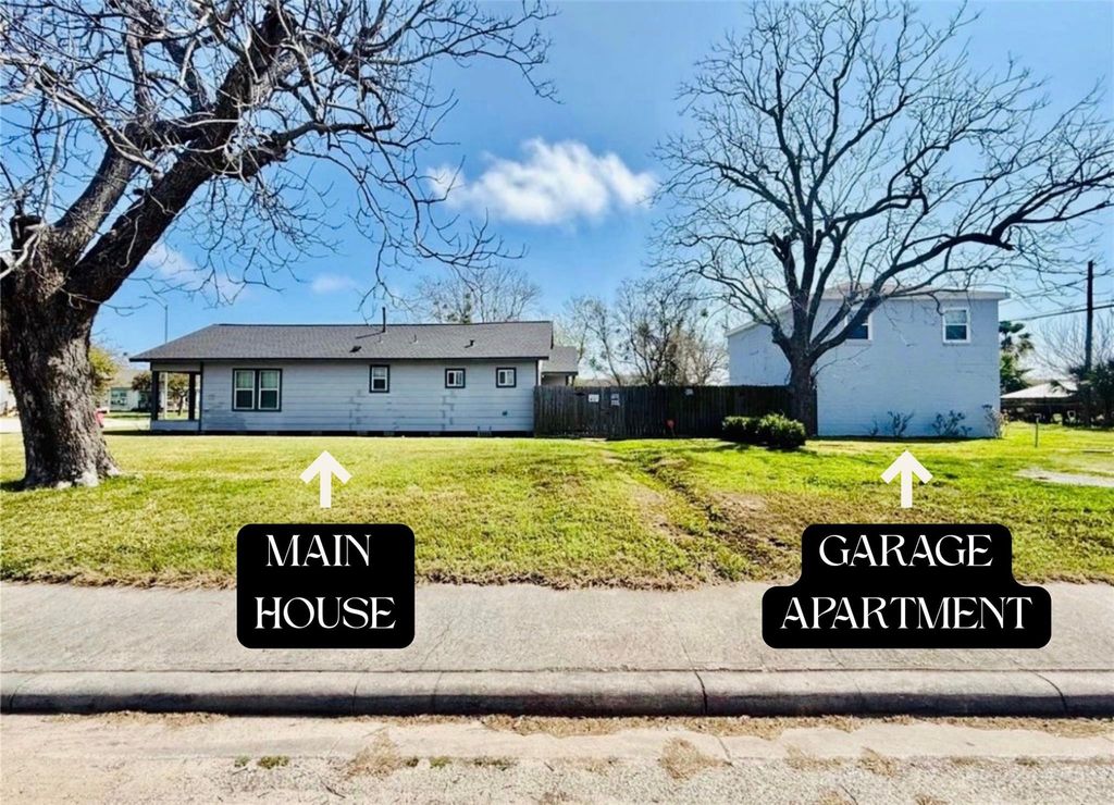 Situated on a spacious double-lot corner property, this versatile setup offers room to live, host & even earn!The 1,248 SF main home welcomes you with a covered front porch, mature shade trees & an inviting open-concept layout featuring tile and wood-look flooring throughout.With 2 full bathrooms-including a tub/shower combo & a separate walk-in shower-comfort & functionality come standard.Tucked behind a fenced breezeway is the 616 SF garage apartment complete with a one-car garage perfect for a shop, storage, or home gym.A private entrance leads upstairs to a bright, open living space with tile flooring and a full bath with shower-deal for guests, extended family or extra income potential.Home and garage have separate meters.Natural light fills both spaces creating a warm & welcoming feel. Located just blocks from local schools, parks, and the grocery store and only minutes from area fishing spots and beaches this property blends everyday convenience with coastal charm & opportunity.