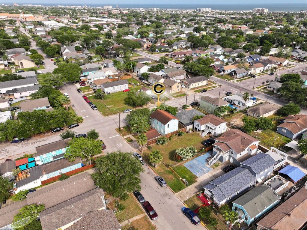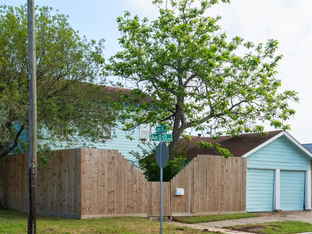 Positioned on a prime corner lot in Galveston’s Midtown, 4901 Avenue O 1/2 offers space, flexibility, and coastal convenience just moments from the Seawall. This two story home features 4 bedrooms, 2 baths, and a connected layout with multiple living areas designed for everyday living and entertaining. Inside, updated wood look flooring, neutral tones, and natural light create a clean, inviting feel, while the kitchen anchors the home with solid wood cabinetry, tiled surfaces, and an efficient flow into surrounding spaces. Upstairs adds additional bedrooms and versatile living space, ideal for guests or extended stays. Outside, a fully fenced yard, mature trees, raised deck, and detached two car garage provide privacy and functionality. With close proximity to the beach, restaurants, nightlife, and a short golf cart ride to the Strand, this property is well suited for a primary residence, second home, or income producing short term rental.