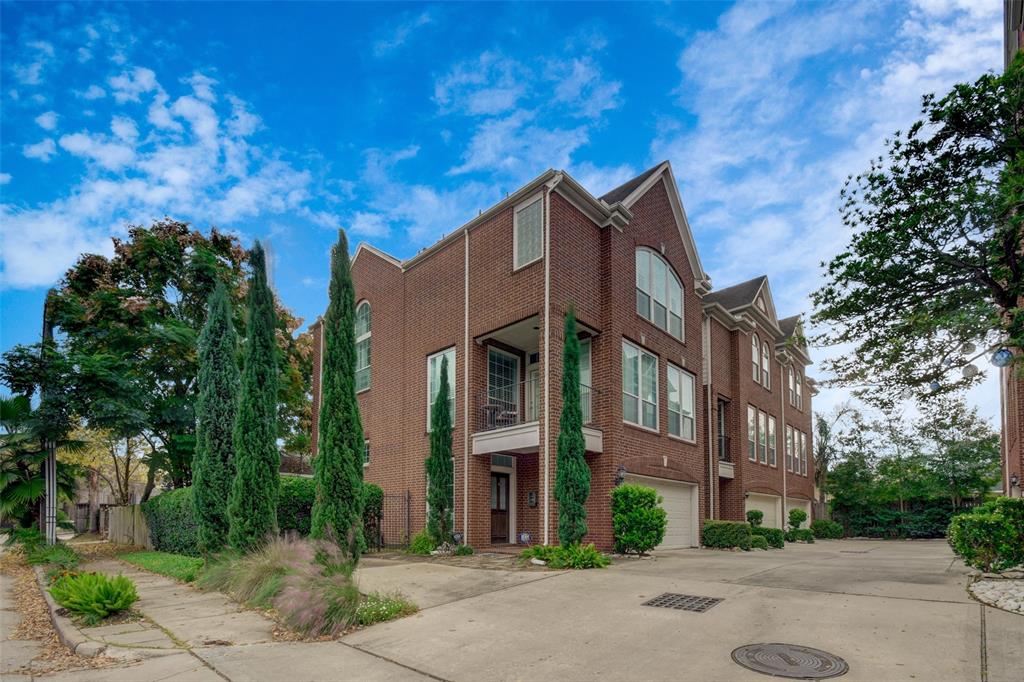 Sophisticated three-story, free-standing townhouse with THREE parking spots, in the heart of Montrose! All 3 bedrooms have full en-suite bathrooms, with walk-in closets. Expansive Custom Bar, hardwood floors throughout the living areas, and lots of natural light. Well landscaped back yard/side yard with patio Lawn service/landscaping, & water included in rent. Walking distance to dozens of restaurants and retail stores, 25-30 minutes to both airports, 5-10 minutes from downtown, 10 minutes to Medical Center, everything is convenient.