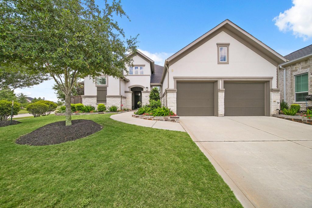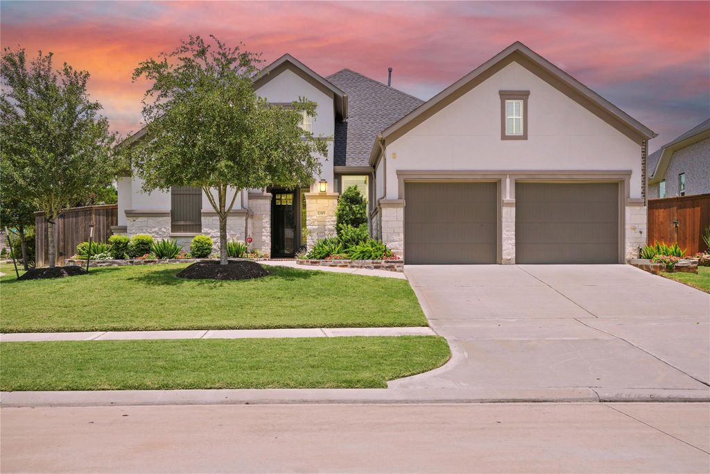 This luxury patio home that is situated in the gated community, The Reserve at Clear Lake, is impeccable! With almost $70K in upgrades, this one-story Tri Pointe Home leaves nothing to be desired. It has been beautifully designed both inside and out. Luxury vinyl plank flooring flows throughout all living areas. Custom Plantation shutters create a finished look and keep the heat out. The floor plan has a private study, which is currently a formal living room. The gourmet kitchen is the "Chef's kiss." with so many upgrades including upper cabinets with glass fronts and lighting, upgraded countertops, double ovens and a large island. The powder room has a gorgeous designer vanity. The primary suite is fabulous, with a very spacious bedroom, spa like bath with oversized tub and split vanities. Both primary closets have custom built-ins ($10K.) Guest bedrooms have ensuite baths, with designer tile and accent tile for a modern look. Upgraded landscaping, includes olive jar fountain in back.