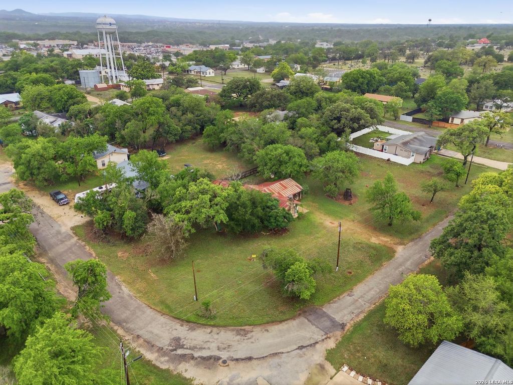 Investor-grade opportunity in the sought-after Indian Waters Subdivision, located within the Bandera city limits and serviced by city water and sewer. This property spans three level platted lots totaling approximately 0.717 acres, including a desirable corner lot, creating multiple paths for redevelopment or income production. The existing structure is in need of significant repair. With a full renovation, the home could be reconfigured into a functional 2-bedroom, 2-bath residence suitable for long-term rental or resale. Alternatively, the true value may lie in the land-offering the potential to clear and build up to three separate homes across the individual lots, subject to city guidelines. The setting is a standout feature, with mature oak trees, established crape myrtles, and evergreen ligustrums providing a classic Hill Country landscape. Located just minutes from Main Street in City of Bandera-known as the Cowboy Capital of the World-this property offers close proximity t