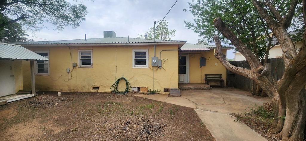 3 bedrooms, one bath home with original hardwood floors in main living area and two bedrooms. Kitchen, bath and 3rd bedroom have tile flooring. Third bedroom could also be used as a second living area. Washer/dryer connections in the kitchen. Metal roof is about 4-5 years old. Updated electrical panel. Large backyard with storage building and storm cellar. Just down the street is a large city park.
