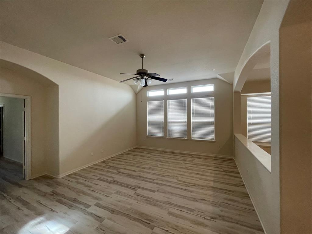 large 1 Story 4 Bedroom with Gameroom. Gourmet kitchen with elegant cabinets and granite countertops, gas cooktop, walk-in pantry 20' tile. 2' blinds, and ceiling fans throughout this gorgeous home!! Formal dining and breakfast room. All fresh paint. Covered patio, no back neighbors.
