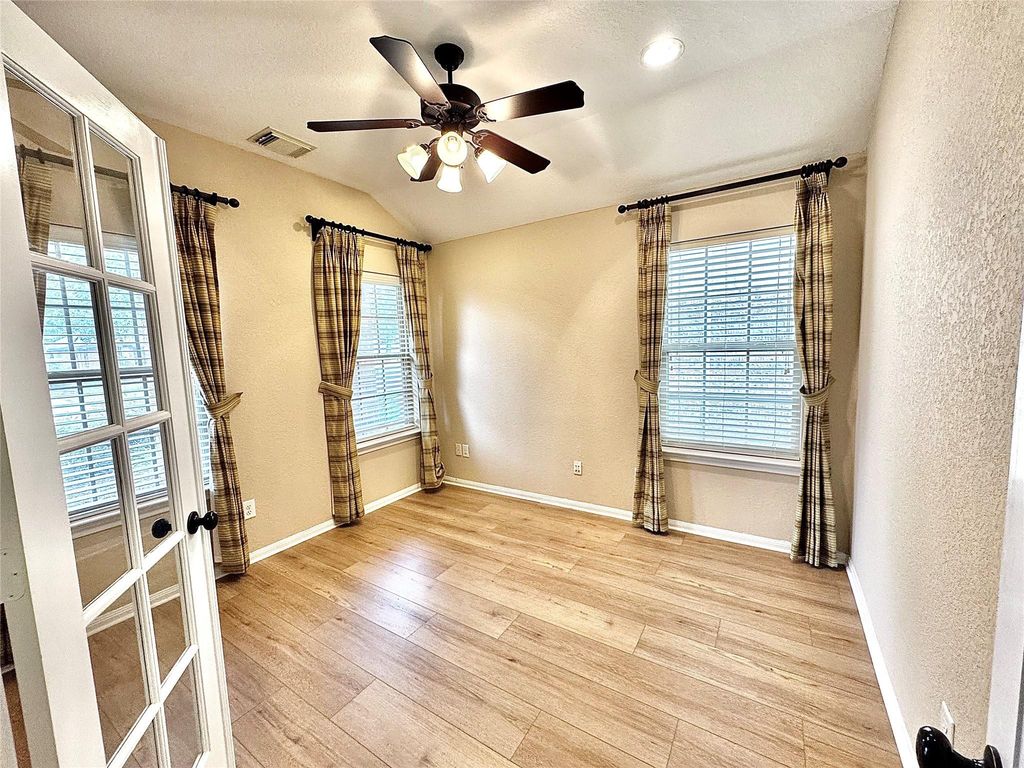 Beautiful 1-story home with tons of upgrades* and extras. Features include: lush landscaping with private yard and no back neighbors, fresh paint throughout, new luxury vinyl, large gourmet kitchen with island and new granite countertops in kitchen and both bathroom counter tops, tile flooring and back splash, great master suite with walk-in closet, his and her sinks, and separate shower and tub.