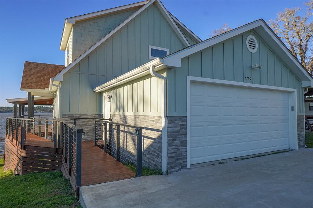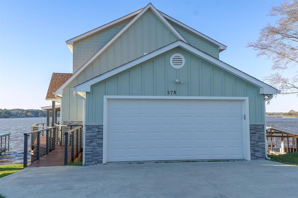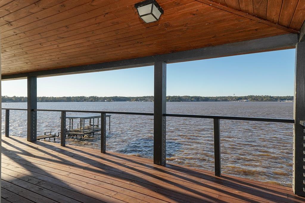 Stunning waterfront home on Lake Livingston! Coastal Styled energy efficient home offers a Game Room 4 spacious Bedrooms with 3.5 Bathrooms. With your driveway and garage facing the street you will walk up to the main level of the house. As you enter from the main level and step into a spacious open-concept family room you will fall in love with the views from the abundance of custom windows and doors. On this floor you will also find a spacious primary ensuite, plus a half bath for your guest. Head upstairs to 2 more bedrooms and a full bath. From the main floor you will go downstairs to a spacious game room, a private bedroom, a 3rd full bath and a very large utility room with extra flex/storage space. You will love the double decks that span the entire back of the house. Cedar Point Subdivision is 24/7 gated Community with a Club House, Subdivision Pool, Boat Ramps and Park.
