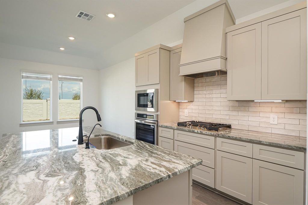 Beautiful New Construction Home for Rent – 4 Bed, 2.5 Bath FRIDGE, WASHER, DRYER INCLUDED. This stunning one-story home features 10-foot ceilings, luxury vinyl flooring, and elegant granite countertops. The spacious kitchen includes stainless steel appliances and a built-in oven and microwave, gas cooktop, under-cabinet lighting, and soft-closing cabinets and drawers. The primary suite offers a relaxing soaking tub, oversized mud-set shower, and large walk-in closet. Enjoy the covered back patio with no back neighbors, an irrigated front and back yard, and a tankless water heater. Additional features include a garage door opener and energy-efficient design. Conveniently located in Pearland ISD, just minutes from shopping, dining, and easy Beltway 8 & I-45 access.