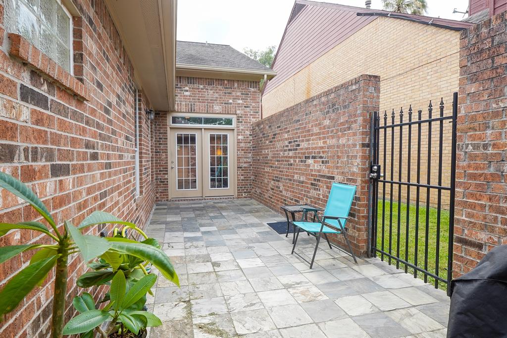 A must see move in ready townhome in the heart of Alvin. Appliances included. Corner location with open green space. Great floor plan with a large den with french doors overlooking the private patio. The oversized updated kitchen has beautiful custom cabinet and granite countertops. Lots of great workspace for the chef. All appliances stay. The kitchen is open to the breakfast/dining room and den. The primary bedroom is downstairs with a private en suite bathroom. Nice oversized shower in the primary bathroom. 2 spacious secondary bedrooms upstairs plus a full bathroom. Half bathroom downstairs. Lots of storage in the meticulously maintained home. Enjoy the big patio with slate flooring that connects the home to the 2 car garage. Greenspace right off the patio. This community has lots of open greenspace with a gazebo. Enjoy the low maintenance of townhome living with no yard work. Walking distance to nearby parks and trails. Never flooded!